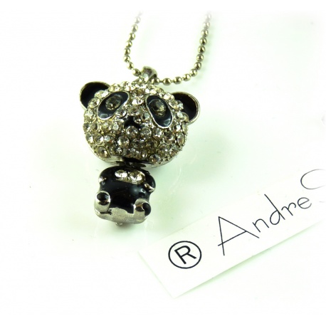 Anhänger Kristall Panda-Bär emailliert und versilbert