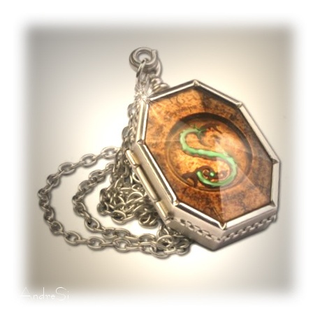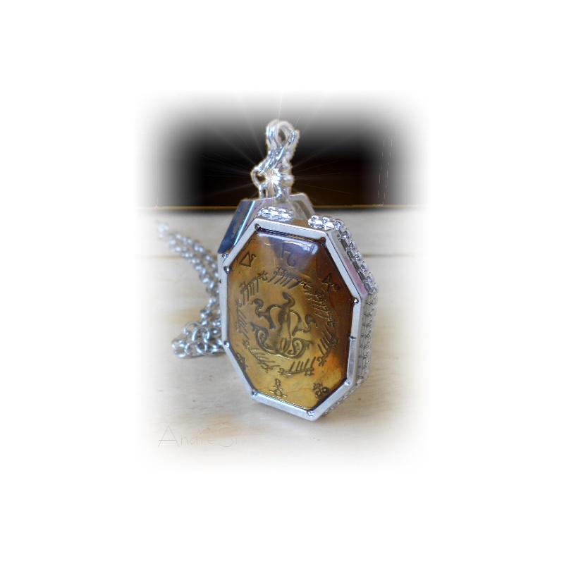 Salazar Slytherins Horkrux Medaillon - hartversilbert mit durchsichtigem Bernsteinimitat - HP Fashion as-hp-sly-anh-1