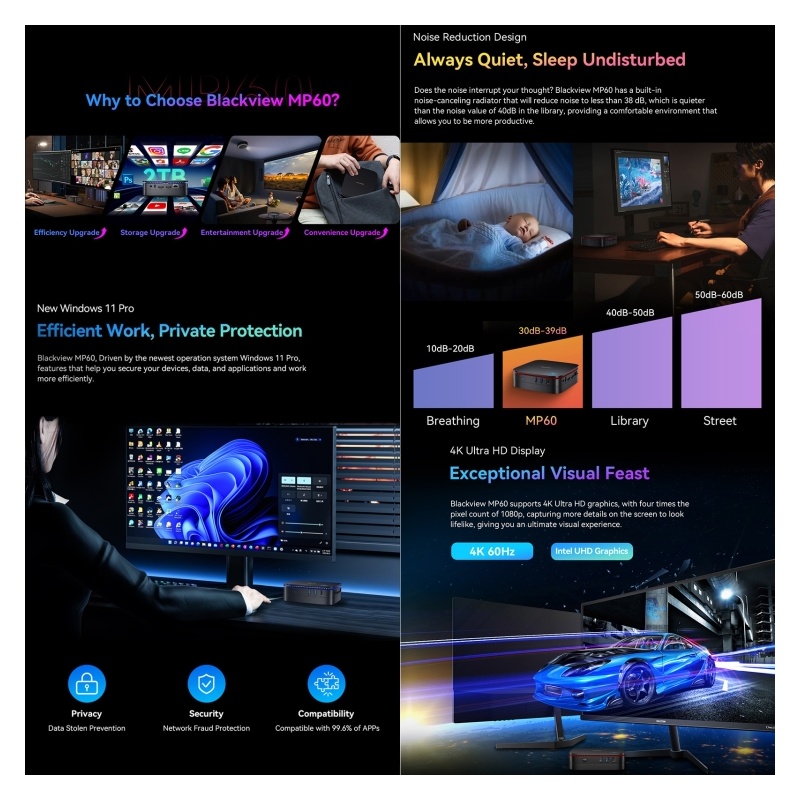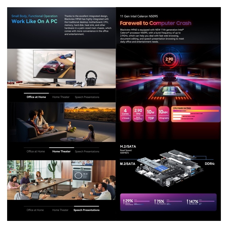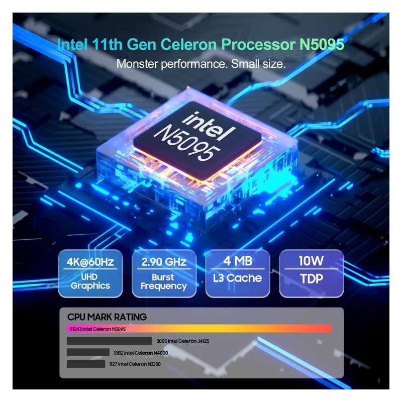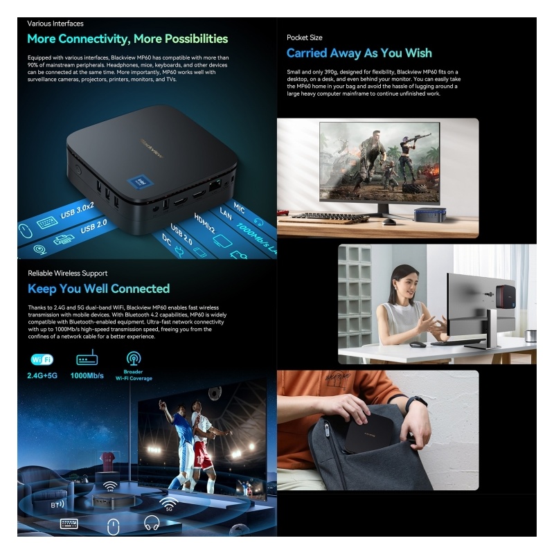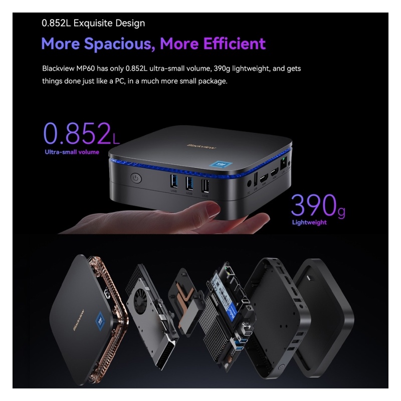 Blackview MP60 Mini-PC, 16 GB + 512 GB, Windows 11 Pro Intel Jasper Lake N5095 bis zu 2,9 GHz, EU-Stecker (Blau)TT0216L