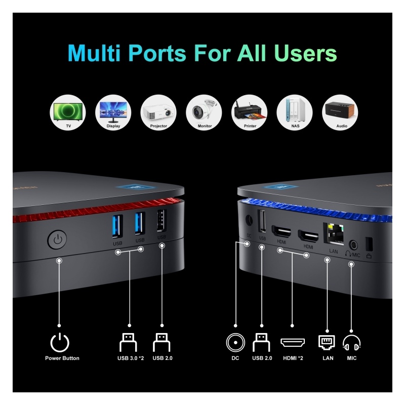 Blackview MP60 Mini-PC, 16 GB + 512 GB, Windows 11 Pro Intel Jasper Lake N5095 bis zu 2,9 GHz, EU-Stecker (Blau)